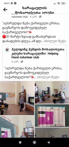 31 მარტი ზვიად გამსახურდიას დაბადების დღეა, ამ დღესთან დაკავშირებით ჩავატარე შეხვედრა ხარაგაულის N3 საჯარო სკოლაში, სადაც ვისაუბრე მის მოღვაწეობაზე, მიღწევებსა და საქართველოსთვის მოტანილ უდიდეს სარგებელზე. ასევე წარმოვადგინე პოსტერი სახელწოდებით- საქართველოს პირველი პრეზიდენტი. შეხვედრამ ნაყოფიერად ჩაიარა და აუდიტორიაც კმაყოფილი დარჩა.
