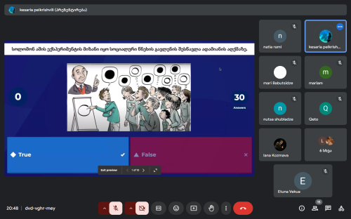სხვა ჰელფინგ ჰენდის მოხალიისებთან ერთად ჩავატარე ძალიან საინტერესო და ინტერაქციული შეხვედრა.განვიხილეთ ორი ფსიქოლოგიასთან დაკავშირებული ვიდეო,ჩავატარეთ პატარა დისკუსიები და ჩვენს მონაწილეებს შევთავაზეთ საინტერესო აქტივობები,როგორიცაა Kahoot ქვიზები.
