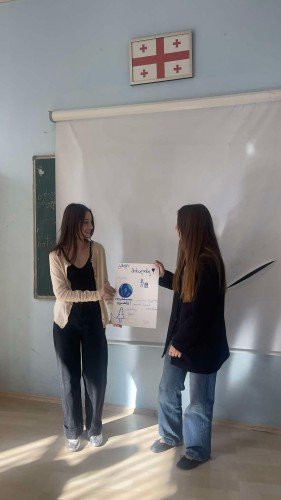 თარიღი: 1.04.2025მე და ერთმა მოხალისემ გავაკეთეთ პრეზენტაცია "მოხალისეების როლი საზოგადოებაში" და წარვადგინეთ N31 საჯარო სკოლის ერთერთ მე-10 კლასშიაქტივობის ხანგრძლივობა: 4 საათი