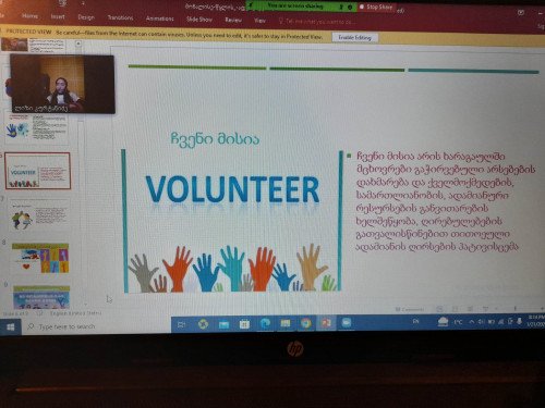 საწყის ეტაპზე გამოვაქვეყნეთ სტატია, სადაც მოხალისეებს ვიღებდით და ორი კვირის განმავლობასი 11 მოზარდმა შეავსო აღნიშნული ფორმა. შემდგომ ონლაინ ფორმატში, ზუმის საშუალებით მოვაწყვეთ საკლუბო შეხვედრა. შეხვედრას გაცნობითი ხასიათი ჰქონდა, დამწყებ მოხალისეებს გავაცანით მოხალისეობის, სუფთა წყლისა და სანიტარიის, ადვოატირების, "მოხალისე წყლის ადვოკატების" პროგრამა და ჰელფინგ ჰენდის ორგანიზაცია. მოხალისეები მზად არიან ჩვენთან ერთად განახორციელონ ბევრი საინტერესო მოხალისეობრივი აქტივობა და ტავიანთი წვლილი შეიტანონ სხვადასხვა სახის პრობლემის გადაჭრაში.