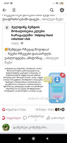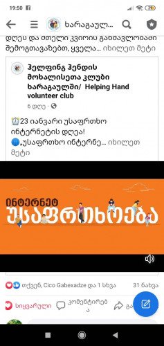 მოხალისე ლიდრებმა გადავწყვიტეთ უსაფრთხო ინტერნეტის დღესთან დაკავშირებით სოციალურ ქსელში, ხარაგულის მოხალისეთა კლუბის გვერდზე ერთი კვირის განმავლობაში გამოგვექვეყნებინა მნიშვნელოვანი რჩეევები, რათა თავი დაიცვას ხარაგულის მოსახლეობამ ინტერნეტ საფრთხეებისგან. აქტივობამ საინტერესო შედეგი გამოიღო და უამრავი დადებითი ემოცია წამოვიდა.