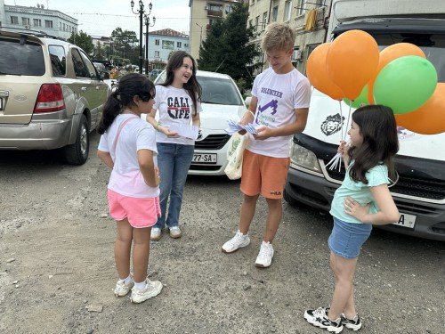 This project was about raising awareness among children about how to protect themselves from homeless and aggressive dogs, which are unfortunately common in Georgia, as well as about preserving the environment - how to keep the environment clean and why its pollution is harmful not only to us , but also to animals. Tamara, who is also an active volunteer of Helping Hand, and I searched for information, collected materials, printed them, decorated them with beautiful pictures and explained them with balloons and distributed them to the children. The project took 14 hours, it was very fun and interesting. We pent around 14 hours gathering information and making fliers about a very serious problem in Georgia, which is how to stay safe from stray dogs, I did this project in Senaki where you can find tons of stary dogs near highly populated areas, so I decided to hand the fliers, which had all the information given, with the help of my friends. Along with information about old dogs we also included parts about our environment and how to keep it clean