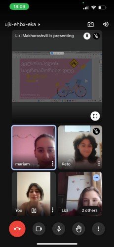3 ივნისი- ონლაინ პრეზენტაცია ველოსიპედის მსოფლიო დღეზე. ლიზი ლომიძეს მოხალისეების ჯგუფმა, საერთო ინიციატივით, ავაწყეთ და წარვადგინეთ პრეზენტაცია ველოსიპედის მსოფლიო დღის შესახებ. ონლაინ შეხვედრის მიზანი ახალგაზრდებში ჯანსაღი ცხოვრების წესის პოპულარიზაცია იყო. მოხალისეების რაოდენობა-7, დამსწრეების რაოდენობა-10. შეხვედრის შედეგად, მონაწილეებმა შეიძინეს ახალი ინფორმაცია ველოსიპედის ისტორიის შესახებ და შემდეგ ჩაერთნენ დისკუსიაში ჯანსაღი ცხოვრების წესზე.