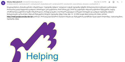 12.03.2025 მოხალისეებმა დავაორგანიზეთ და ჩვატარეთ პრეზენტაცია რაც მოიცავდა ინფორმაციის გავრცელებსა ასევე დავუკავშირდით დამსწრეებს და მივაწოდეთ ინფორმაცია პრეზენტაციის ჩატარების დროზე იმ "მომავალი მოხალისეებისთვის" რომლებიც იყვნენ რეგიონებიდნ და არ შეეძლოთ ფიზიკურ შეხვედრაში მონაწილეობა.