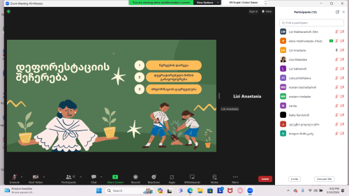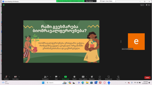 პროექტის აღწერამენორებისა და მონაწილეების პროგრემის ფარგლებში, ჩვენმა ჯგუფმა მოიძია ინფორმაცია და ააწყო პრეზენტაცია ბიომრავალფერობნების დღის აღსანიშნავად და ბიომრავალფეროვნების მნიშვნელობასა თუ შენარჩუნების მეთოდებზე, მოგვიანებით მისი პრეზენტაცია წარვადგინეთ სხვა მონაწილეების წინაშე. 3სთ