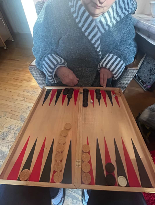 ყოველ კვირა ვსტუმრობ ხანდაზმულს პანსიონატში, ვთამაშობთ ნარდს კარტს, ასევე ქარგვას, ყოველ მისვლაზე ახალ ახალ აქტივობებს ვაკეთებთ მე და ანია. და ვაპირებ გავაგრძელო მასთან სტუმრობები, სანამ შემეძლება.
