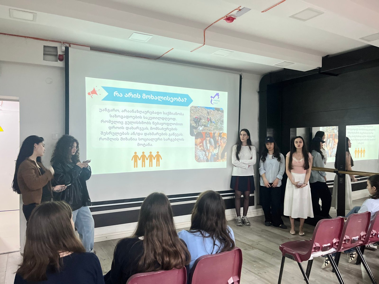 მოხალისეთა მენტორების პროგრამის ფარგლებში ვეწვიეთ  საერთაშორისო ქართულ სკოლას და ბავშვებისთვის საინფორმაციო შეხვედრა ჩავატრეთ მოხალისეობის მნიშვნელობის შესახებ. ჯამში ამ აქტივობის დაგაგემვით, პრეზენტაციის აწყობით და ჩატარებით 3 მოხალისეობრივი საათი შევასრულეთ.