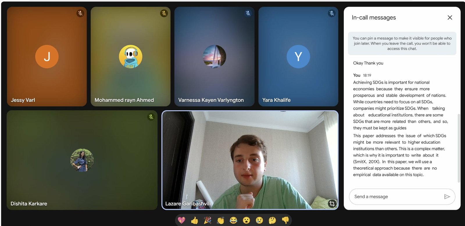 ჩავატარე სემინარები და შეხვედრები, რომლებიც ეხებოდა კვლევებს და კლიმატის ცვლილებებს, ჯამში ესწრებოდა 30-მდე ახალგაზრდა მთელი მსოფლიოდან.